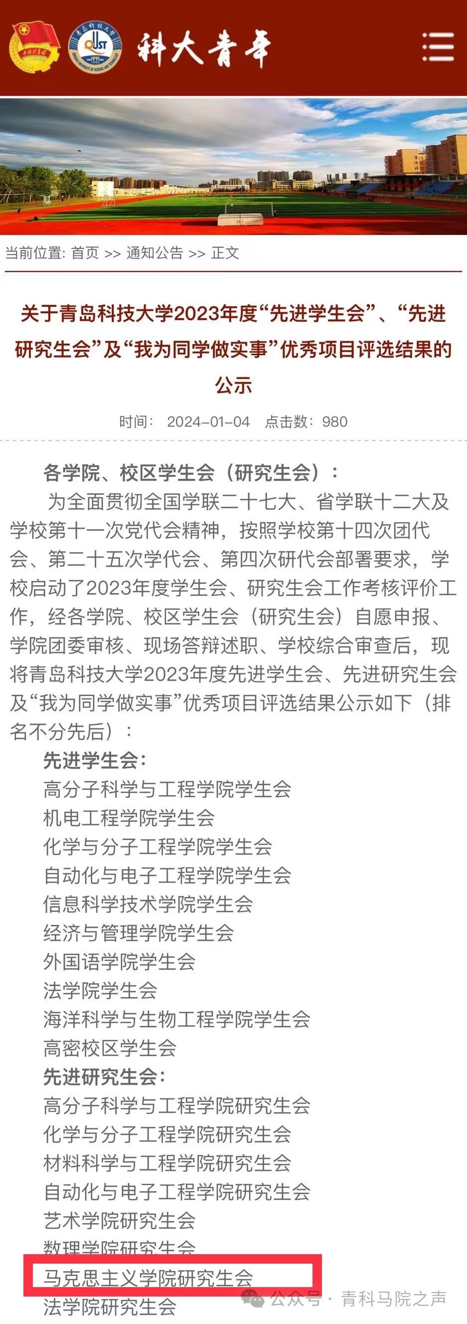 近日,学校对青岛科技大学2022-2023学年“先进研究生会”评选结果进行公示,hjc黄金城网站研究生会荣获青岛科技大学2022-2023学年“先进研究生会”荣誉称号。