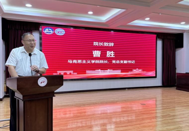 曹胜代表学院全体师生向2025级新生致以热烈欢迎和诚挚祝贺,介绍了学院的发展历程、学科架构、办学特色与育人成效等情况。他强调,学院始终高举马克思主义伟大旗帜,全面贯彻党的教育方针,紧扣立德树人根本任务,持续强化学科建设、深化教学改革、提升人才培养质量,着力为国家培育更多信仰坚定、理论深厚、能力卓越的马克思主义理论高层次人才。他勉励新生要坚定理想信念、锤炼过硬本领、勇于创新创造、厚植家国情怀,把论文写在中国大地上,为强国建设、民族复兴挺膺担当。