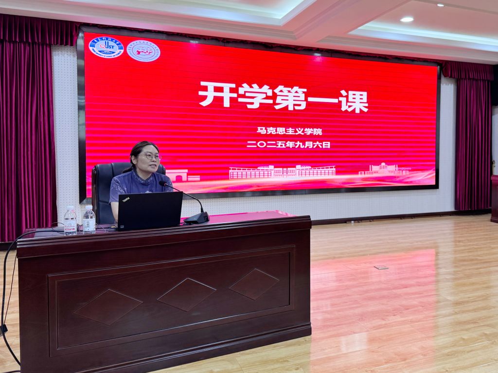 李卉为全体新生主讲开学第一课。她围绕“新学期,新起点,共奋进——砥砺前行,筑梦科大”主题,引导学生们开启新征程。她寄语新生五点希望:一要筑牢信仰之基,深学细悟,厚植爱国情怀;二要端正学习态度,明晰学业方向,扎根实践沃土;三要聚焦安全稳定,守住安全底线,增强安全意识;四要培育文明素养,践行修身准则,涵养担当之气;五要关注心灵成长、塑造阳光心态,保持积极情绪,实现身心和谐发展。她强调,作为hjc黄金城网站研究生,要弘扬科大精神,锤炼橡胶品格,践行马院精神,锚定个人长远发展目标,以初心为舵,以学识为帆,在追求真理的征程上笃行不怠,成为无愧于时代、无愧于人民的马克思主义理论人才。