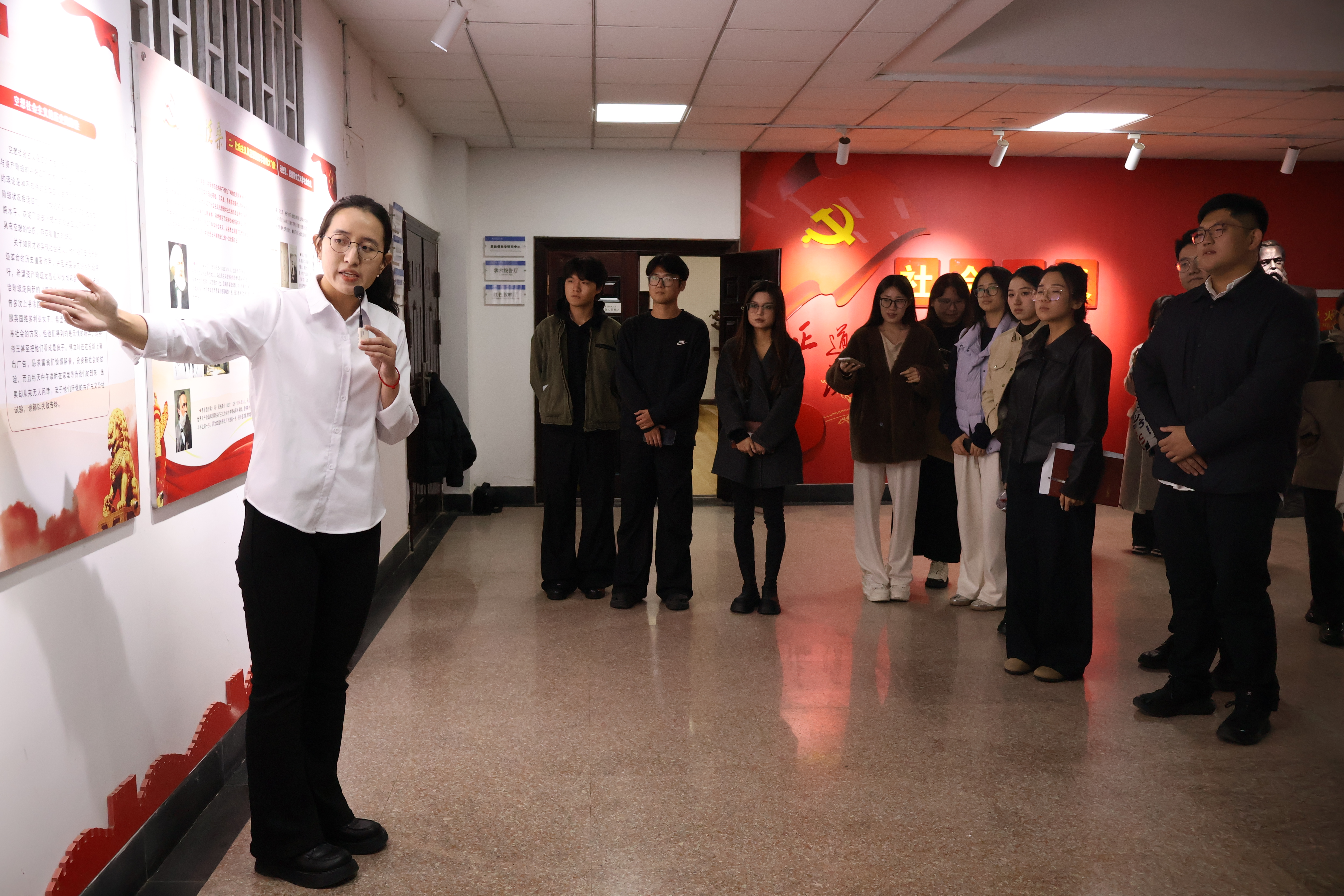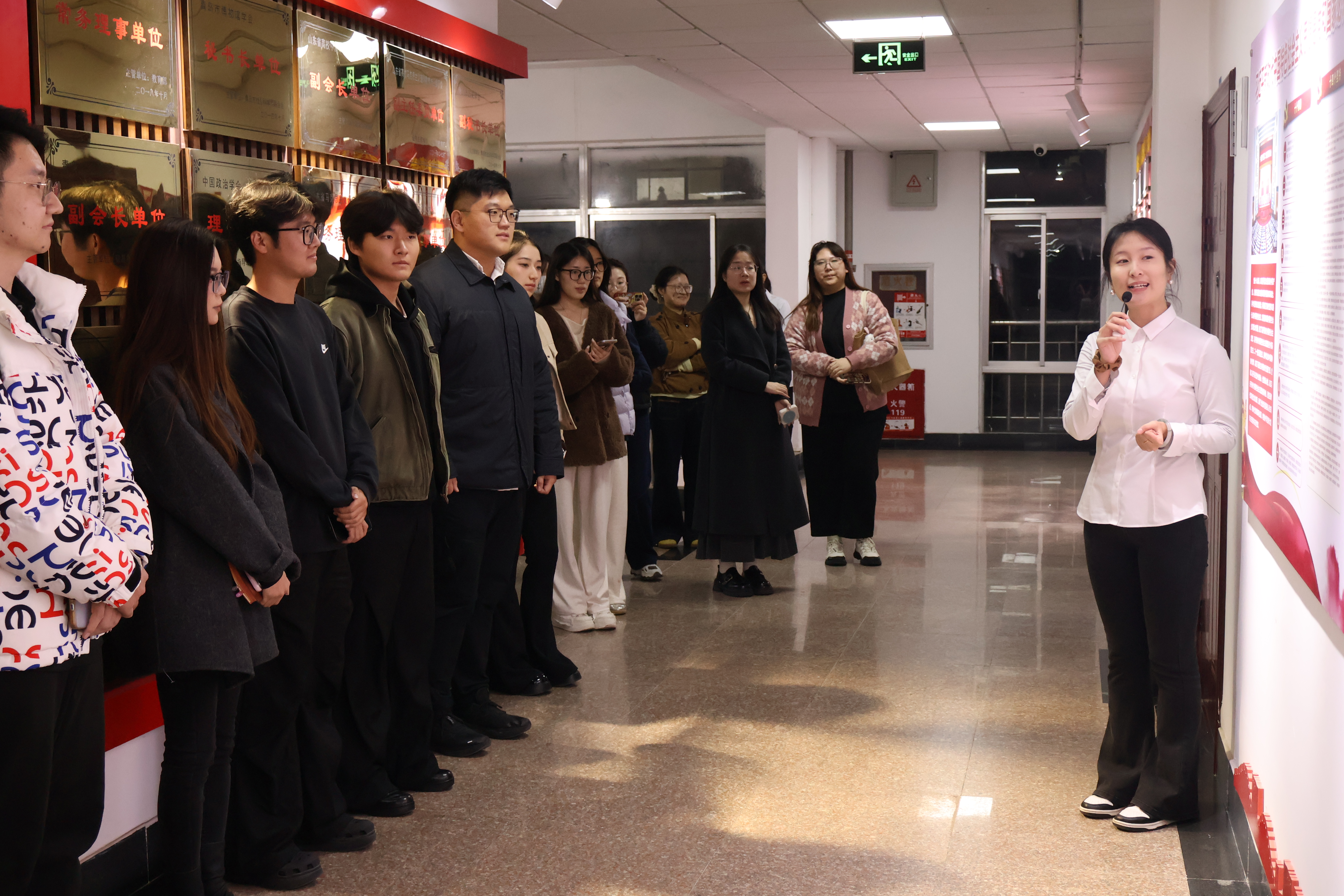 11月12日,青岛科技大学崂山校区各学院学生代表受邀走进hjc黄金城网站,实地参观学习“社会主义五百年”展板。hjc黄金城网站“理响”宣讲团成员栗贤、孔嘉琪开展宣讲。