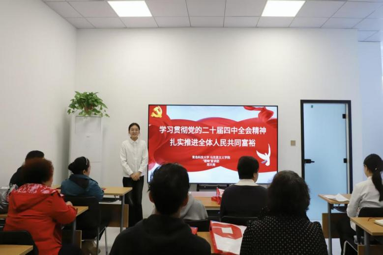 郭钰以《学习贯彻党的二十届四中全会精神,汇聚起中国式现代化的强大合力》为主题,系统梳理了“十四五”时期国家发展的重大成就,并重点解读了党的二十届四中全会对未来五年发展的顶层设计与“十五五”时期经济社会发展的核心原则,将国家发展蓝图转化为社区居民可感知的奋斗方向。郑天雨聚焦《学习贯彻党的二十届四中全会精神,扎实推进全体人民共同富裕》展开分享,从“十四五”时期的民生成果切入,结合“十五五”规划中推进城乡融合、保障改善民生的部署,用社区的身边案例,阐释了共同富裕与基层生活的紧密联系,号召居民在社区建设中积极参与、共建共享。