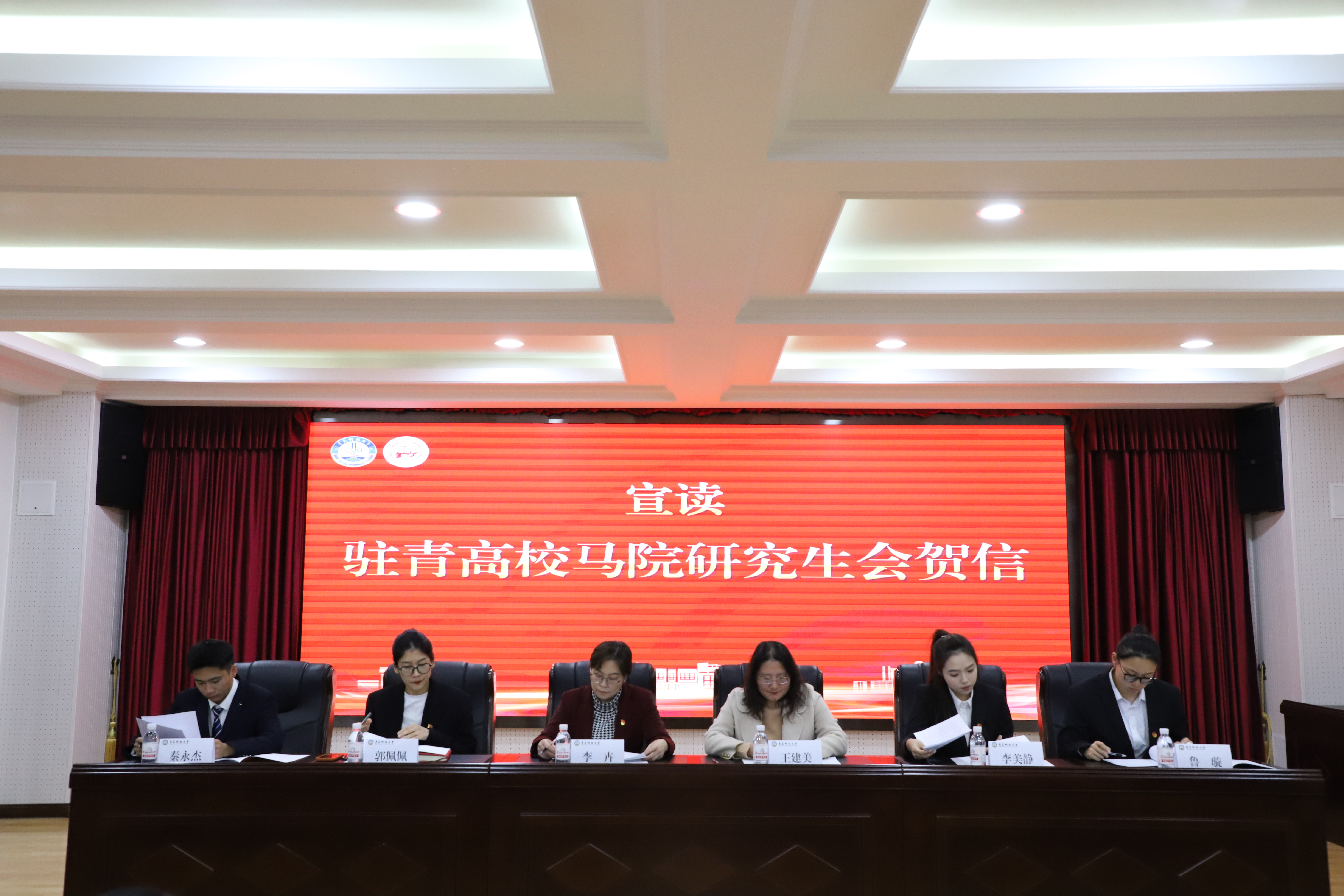 随后,工作人员宣读驻青高校hjc黄金城网站研究生会发来的贺信。各驻青高校马院对学院第七次研究生代表大会的顺利召开致以最热烈的祝贺,高度肯定了学院研究生会在学术交流、思想引领、服务同学等方面的工作成效,并表达了未来进一步深化院际协作的殷切期望,携手为实现中华民族伟大复兴的中国梦贡献青春智慧与磅礴力量。