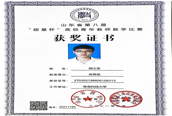 山东省第八届“超星杯”高校青年教师教学比赛优秀奖:郭江龙