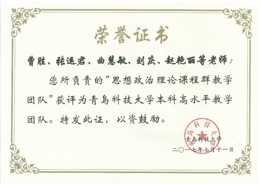 青岛科技大学本科高水平教学团队: 曹胜、张运君、曲慧敏、刘庆、赵艳丽等