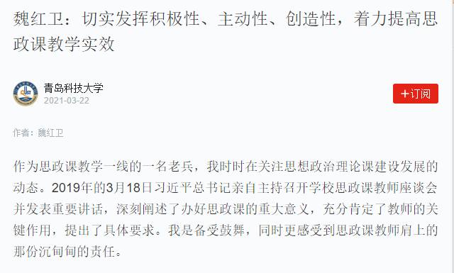 作为思政课教学一线的一名老兵,我时时在关注思想政治理论课建设发展的动态。2019年的3月18日习近平总书记亲自主持召开学校思政课教师座谈会并发表重要讲话,深刻阐述了办好思政课的重大意义,充分肯定了教师的关键作用,提出了具体要求。我是备受鼓舞,同时更感受到思政课教师肩上的那份沉甸甸的责任。