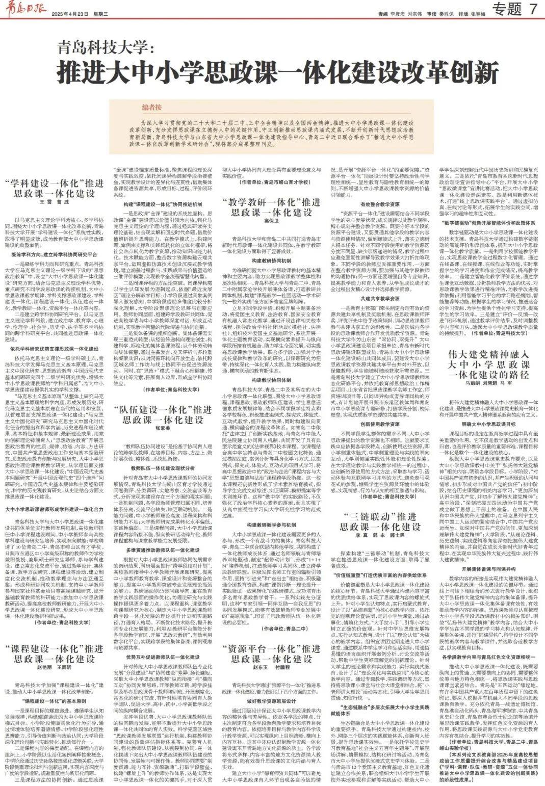青岛日报20250423:《青岛科技大学:推进大中小思政课一体化建设改革创新》