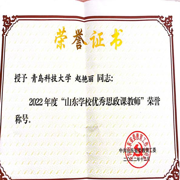 2022年、2023年:山东学校优秀思政课教师荣誉称号——赵艳丽、王建美