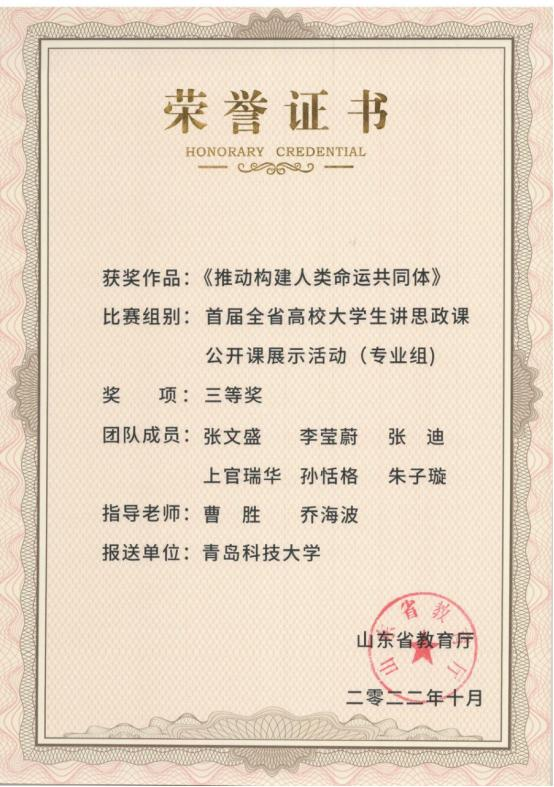 2022年:首届全省高校大学生讲思政课公开课展示活动(专业组)三等奖