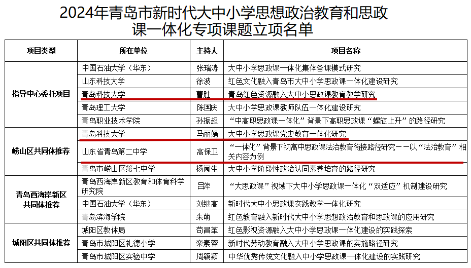 2024年青岛市大中小学思政教育和思政课一体化专项课题:3项