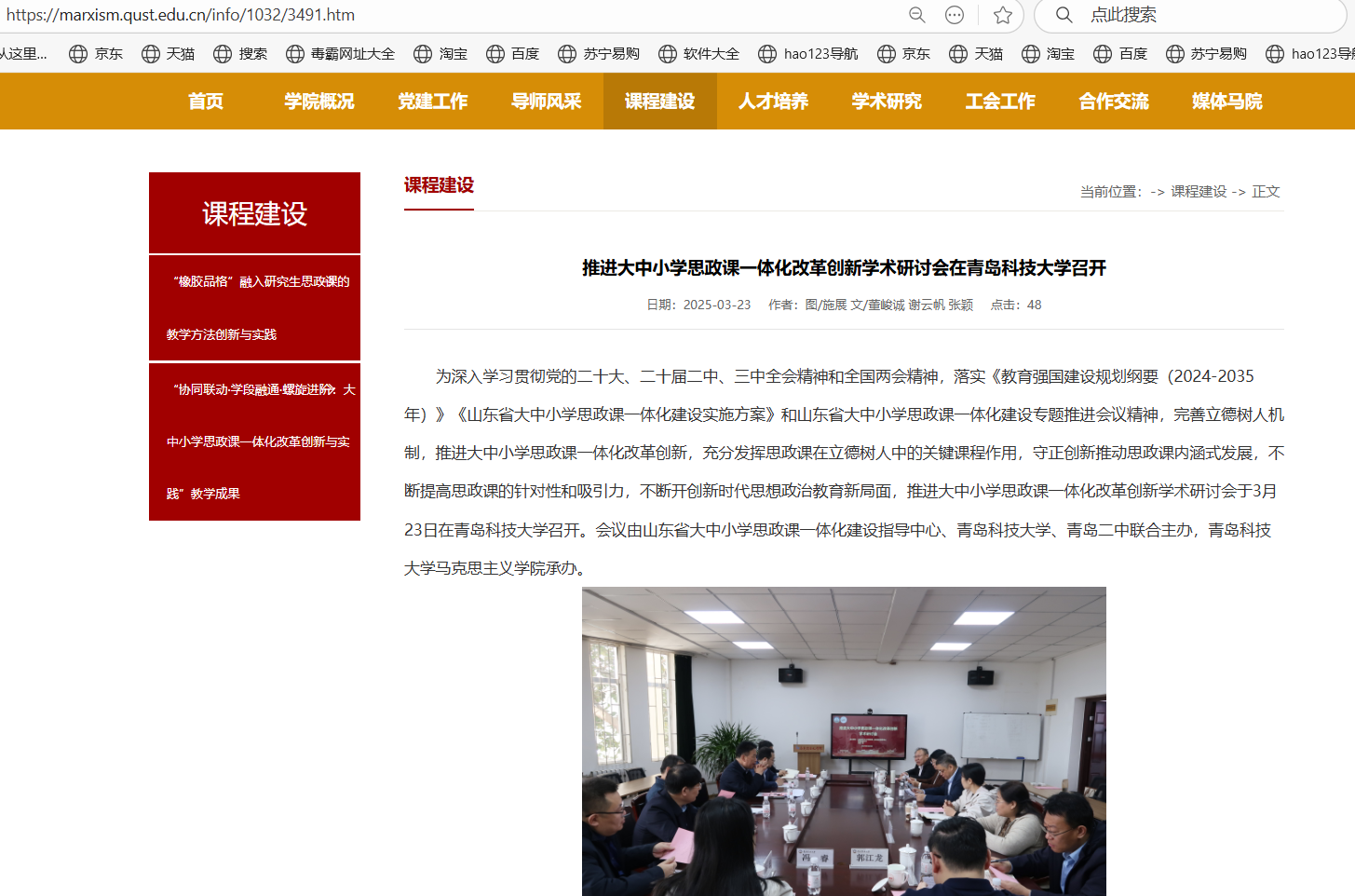 推进大中小学思政课一体化改革创新学术研讨会在青岛科技大学召开