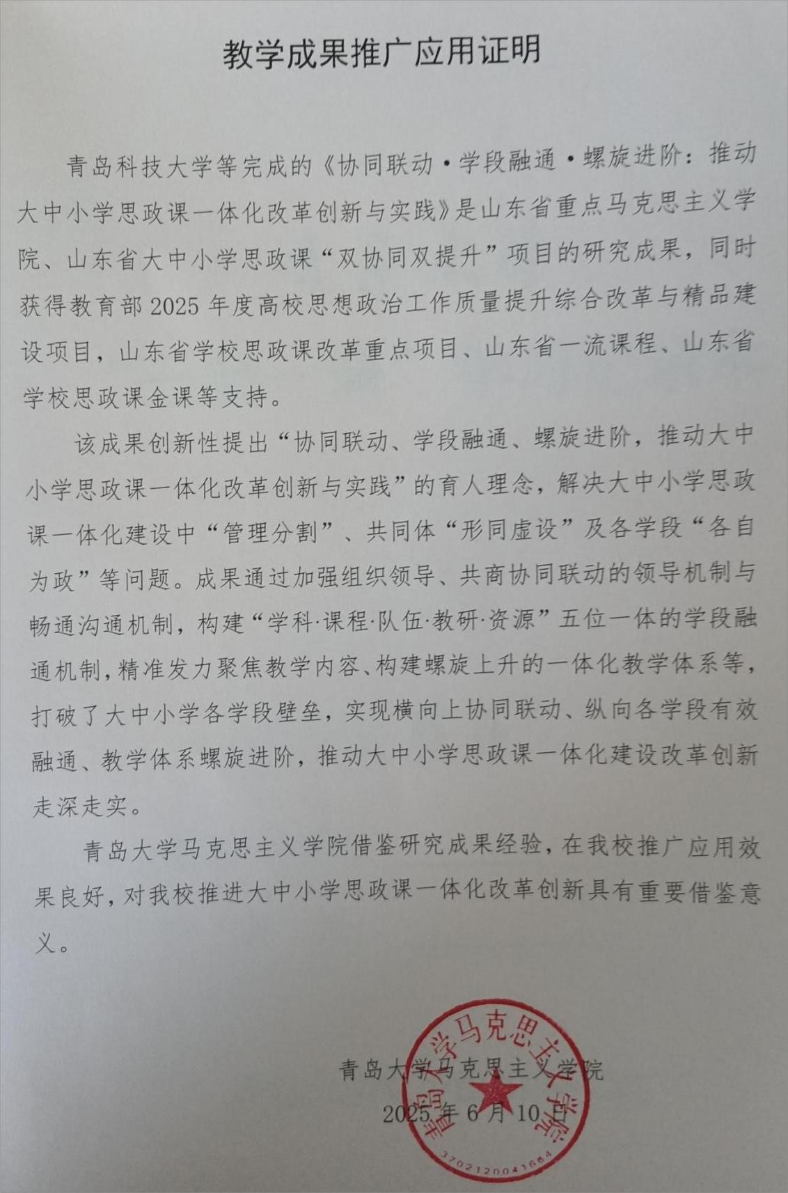 “协同联动·学段融通·螺旋进阶:大中小学思政课一体化改革创新与实践”教学成果