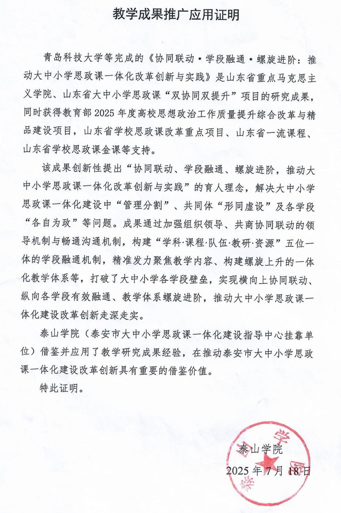 “协同联动·学段融通·螺旋进阶:大中小学思政课一体化改革创新与实践”教学成果