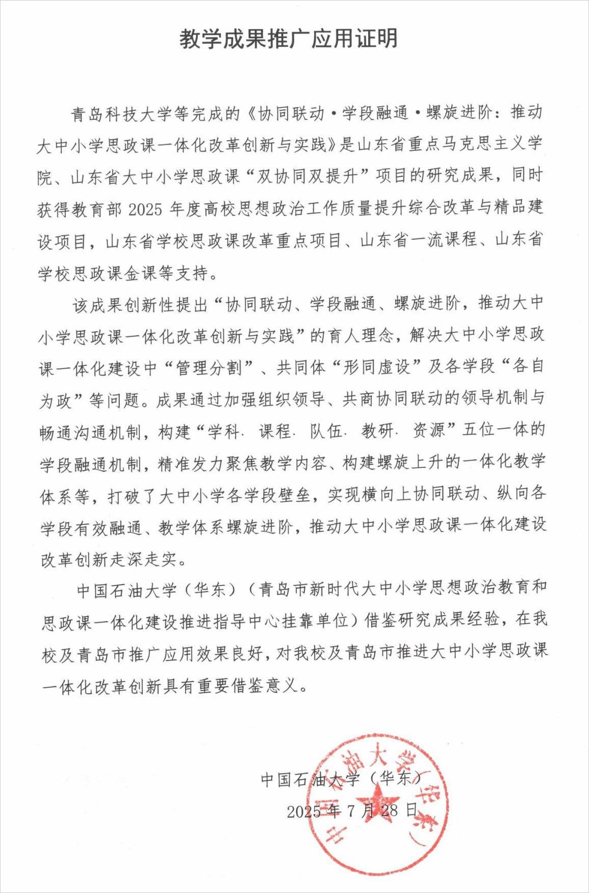 “协同联动·学段融通·螺旋进阶:大中小学思政课一体化改革创新与实践”教学成果
